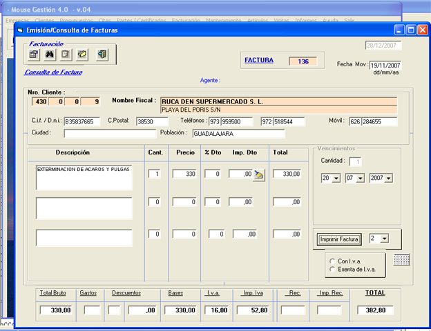 Creacion de una factura